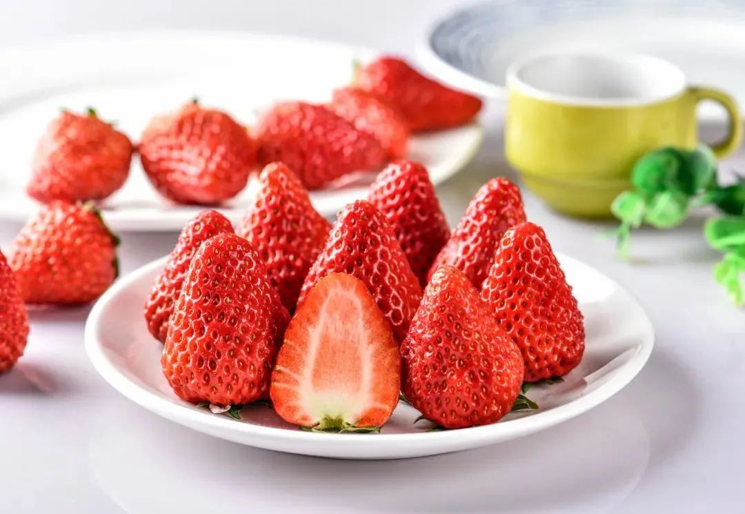 3、看果肉:新鲜的草莓,果肉饱满多汁,质地紧实,不会出现水分渗出或者松软变形的现象。用手指轻压草莓果肉,能感受到一定的弹性,而不是过于软烂。
