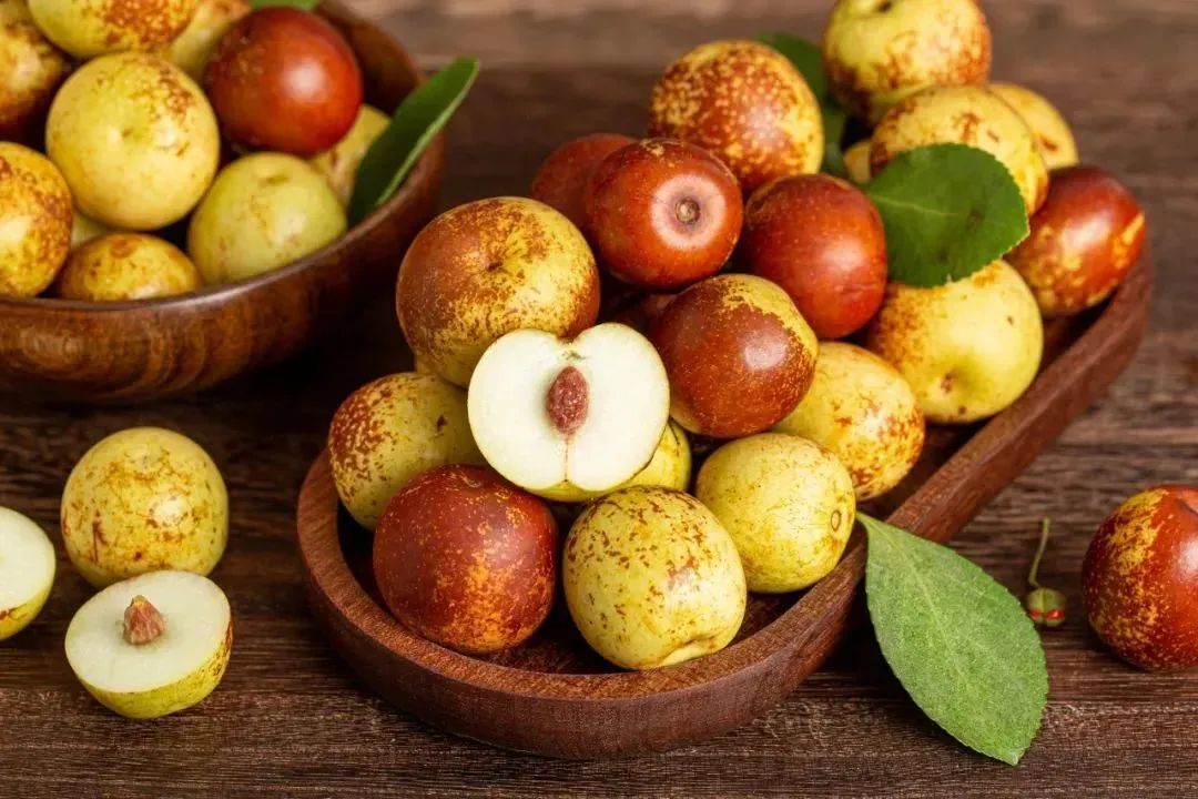 1、看色泽:自然成熟的冬枣,表面的光泽度比较高,颜色呈青色、黄色和红色,分布不均匀。