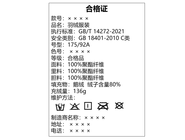 朱小芳表示,新版标准中采用“绒子含量”有利于识别羽绒产品质量优劣,避免不法商贩钻空子,在填充物中加入大量价格低廉的绒丝来提高羽绒的含绒量数值,以次充好。消费者在选购羽绒服时,建议大家重点关注羽绒服的吊牌、水洗标,这里面几乎涵盖了羽绒服的含绒量、面料成分、充绒量、羽绒种类等信息。