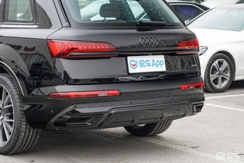 车辆尾部层次感十分鲜明,横平竖直也一直是奥迪的风格,普通版贯穿式的镀铬饰条变为了黑色饰条,而银色的下护板也均采用黑色涂装,红黑的配色还是相当运动的。硕大的下护板透露一丝越野气息,即使是最低配车型也配备的大灯清洗功能,这也强调了奥迪Q7的越野属性。