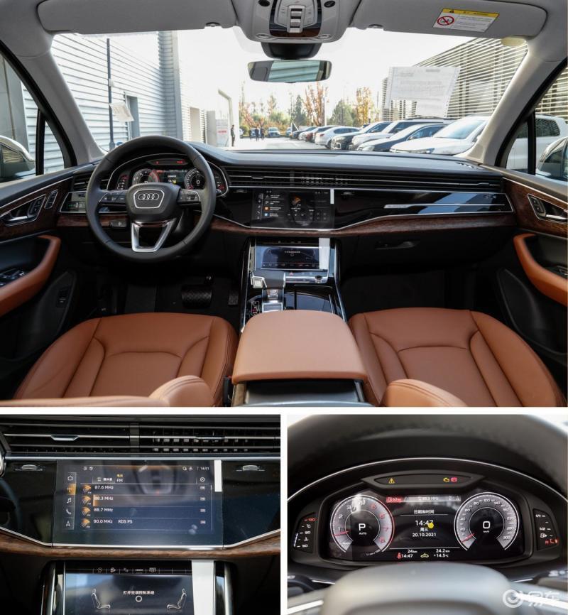 来到车内,奥迪Q7的内饰和另外三款车型相比就稍显老气了,虽然在材质上其实也没什么挑剔的,但这一代奥迪Q7的内饰和外观面临一样的问题:和低级别车型区分不明显,三联屏已经应用在奥迪大多数车型之上,包括贯穿式空调出风口同样如此,同时在配色和饰板的选择不太能第一眼就打动消费者,这也是目前奥迪Q7面临的主要问题。