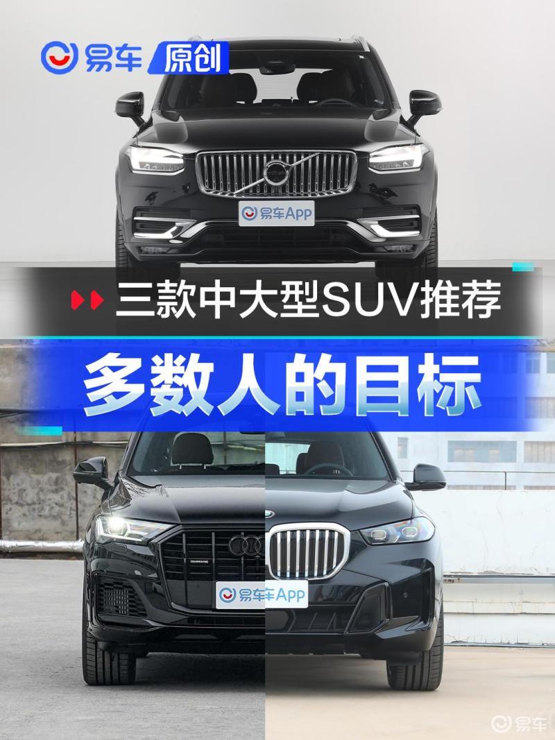 易车原创 在很长一段时间内,豪华品牌中大型SUV是大多数消费者努力奋斗的目标,许多消费者曾暗暗立誓将来要成为它们的车主。随着事业的收获,现在他们也是时候选购一款豪华品牌中大型SUV了,我们今天带来三款豪华品牌中大型SUV,务实的同时也不低调,可以出入高档宴会也能带全家出门撒野。它们分别是:沃尔沃XC90、宝马X5L以及奥迪Q7,从品牌到底蕴,从产品力到价格,这三款车将会是质价比的优选。