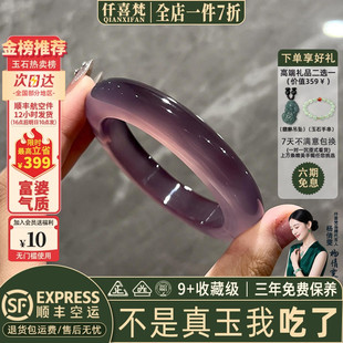 天然冰种玛瑙手镯多肉葡萄帝王紫玉髓手镯冰种紫色玉镯子女细条款