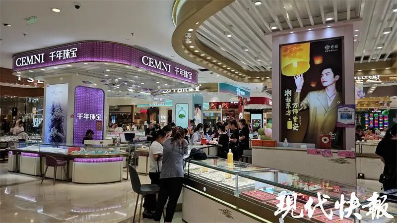 在武商MALL·世贸,多个黄金珠宝柜台前站满了选购的消费者。选购婚礼首饰、生日礼物等“刚需”消费者居多。