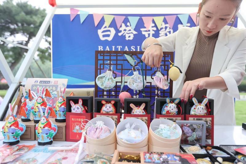 除了老字号全聚德破圈圈粉,积极拥抱年轻消费群体,近年来,在多个市集上还能看见老字号“白塔寺药店”文创产品的踪影。除了冰箱贴、香囊系列,各类养生饮品,以及与非遗大师合作、与中药文化结合的工艺品等琳琅满目。在兔儿爷背部放进了药店自制的金银花、冰片、藿香等十几味草药药包,也是大卖的网红单品。今年国庆期间,白塔寺药店内仅文创产品每天销售额就接近万元。