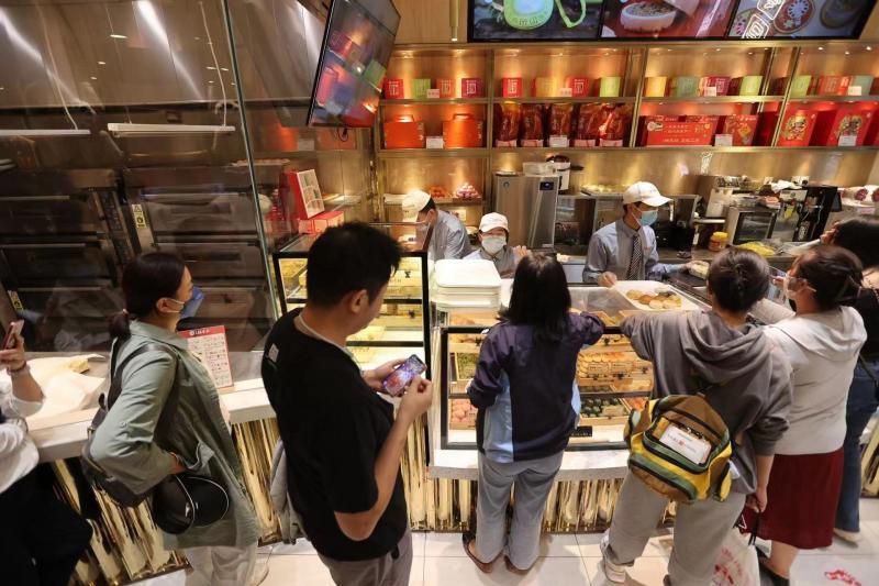 北京稻香村的点心、熟食是北京人日常生活中少不了的一部分,也是游客尝得到、带得走的北京“城市名片”。在北京稻香村零号店内,各式各样的点心吸引了八方游客的眼球,前来购买的消费者或当场支付带走,或选择线上邮寄。