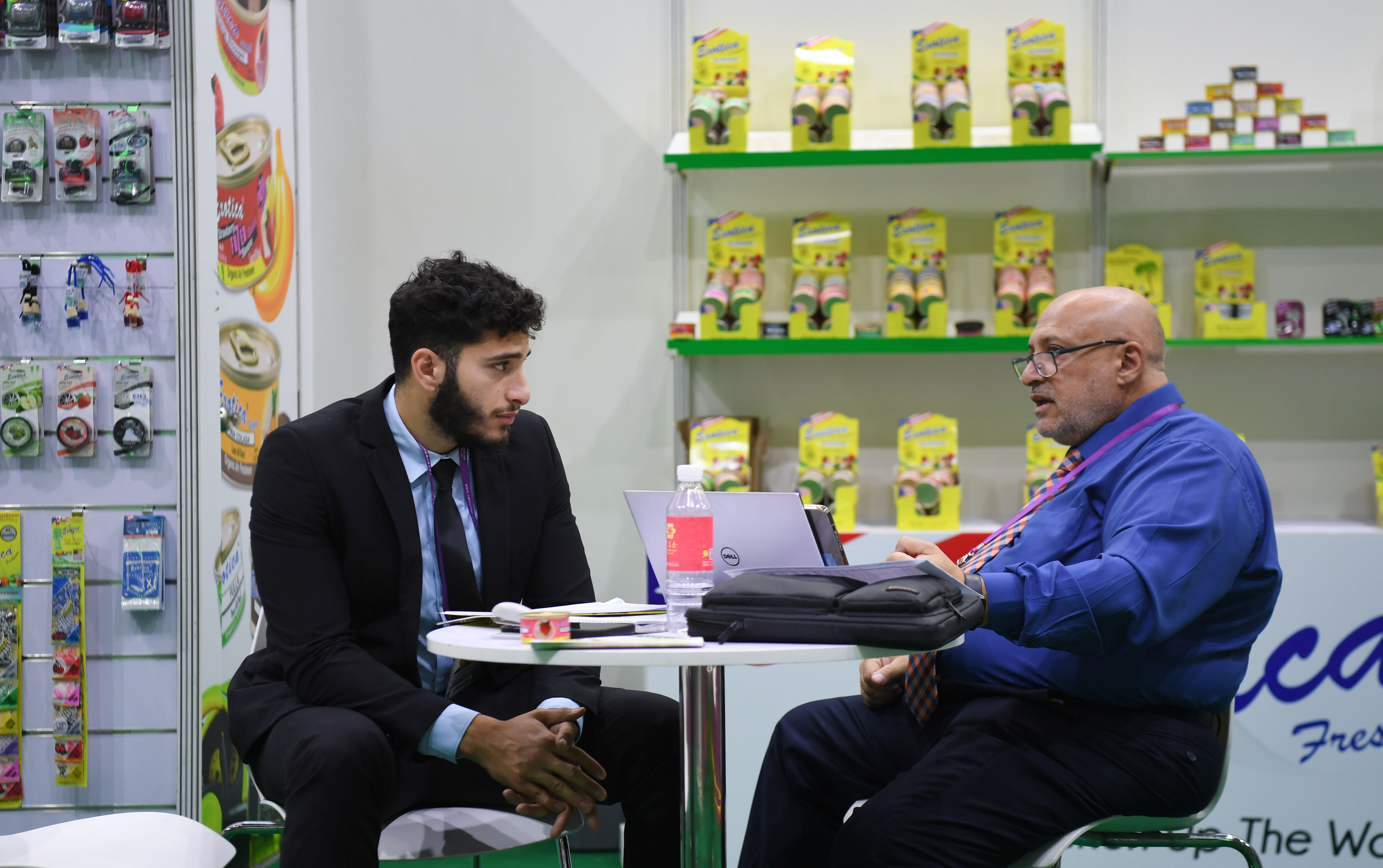 10月15日,一名外国采购商在一家小家电展台洽谈业务。新华社记者 邓华 摄