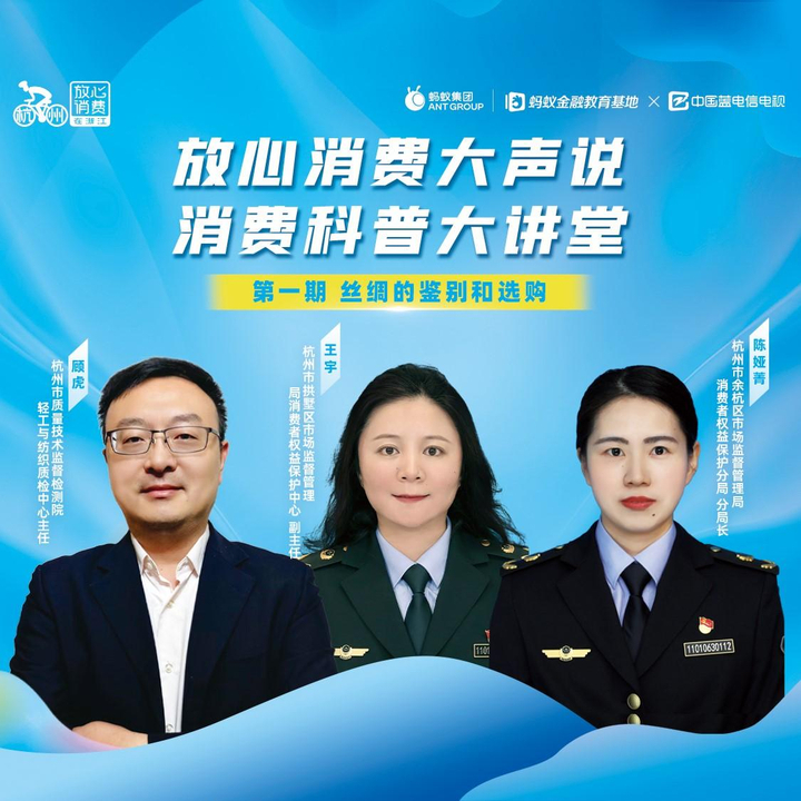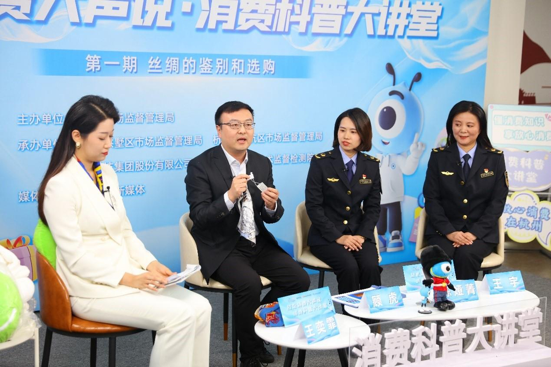 杭州丝绸历史悠久,有“丝绸之府”的美誉,首期直播也选择了杭州市民关切的主题“丝绸的鉴别和选购”。来自杭州市质检院的专家和拱墅区局、余杭区局的消保负责人和大家详细分享了丝绸的消费知识。