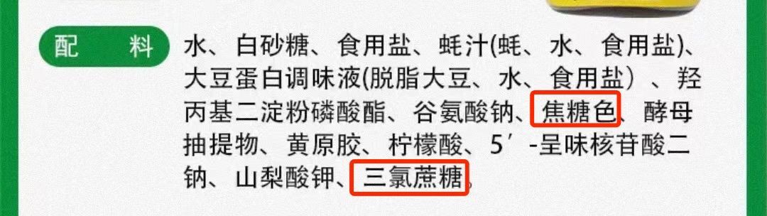 蚝油淡淡的甜味,则用三氯蔗糖、安赛蜜等甜味剂或是果葡糖浆来代替。不仅如此,为了使产品的外观更加接近优质蚝油产品的评判标准,部分蚝油产品会使用焦糖色为产品着色,使蚝油呈现黑亮的颜色。