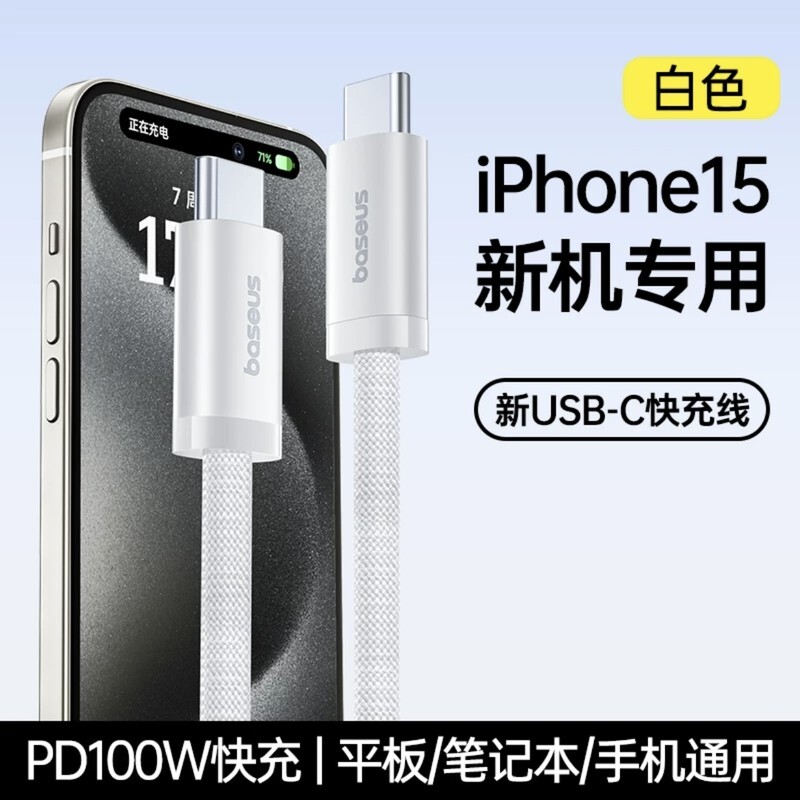 倍思iPhone 15全系通用数据线,支持苹果笔记本、新款iPad mini、Switch设备,最高支持PD100W快充,编织材质耐用性更高,有白、蓝、灰、黄、黑五中颜色可选,参考售价24.2元。